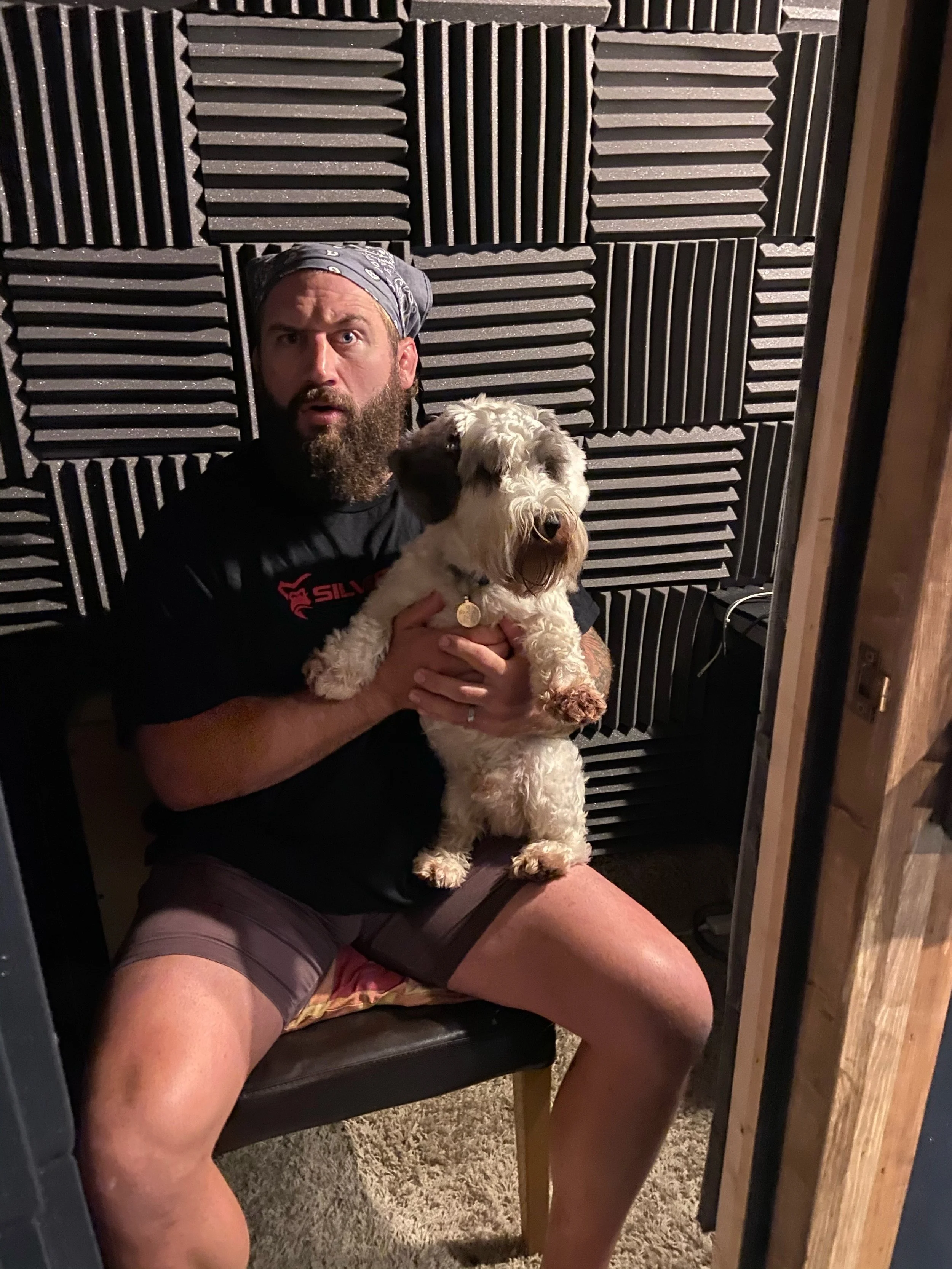 Joe Marler (and Wilf) recording his hilarious autobiography “Loosehead”